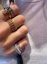 La Bague Nyra est en laiton doré , elle peut être portée seule ou avec d’autres bijoux.