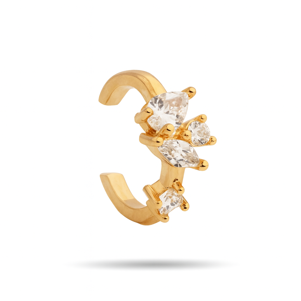 Ce bijou est une bague d’oreille qui ne nécessite aucun trou. Elle peut être portée seule ou avec d’autres boucles d’oreilles.