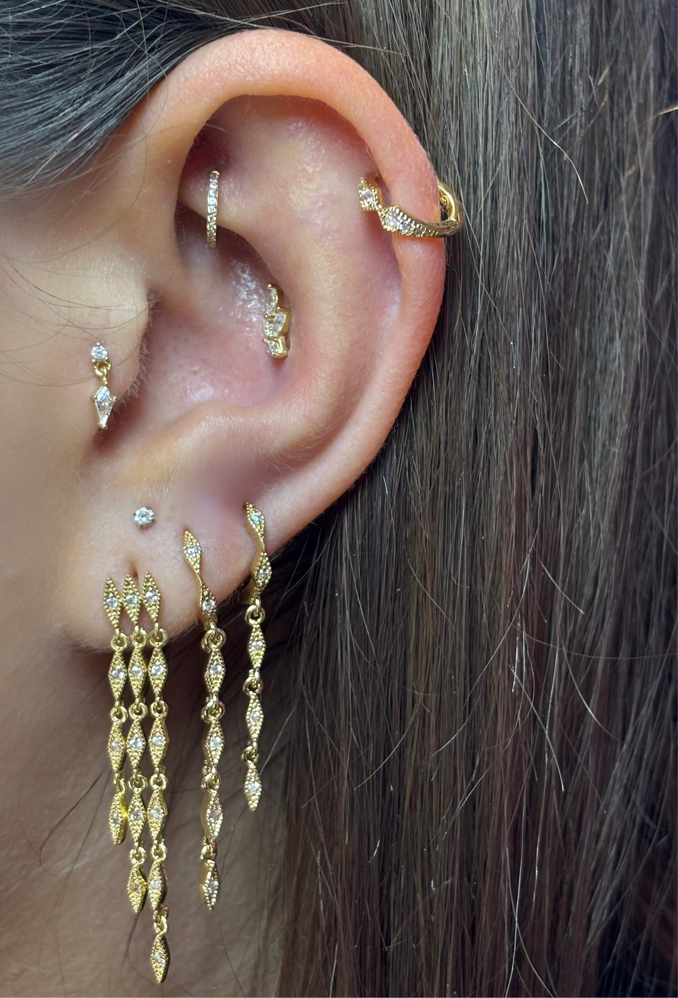 Cette boucle est une créole en plaqué or et zirconiums blancs.
