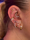 Cette boucle est une créole en plaqué or et zirconiums blancs.