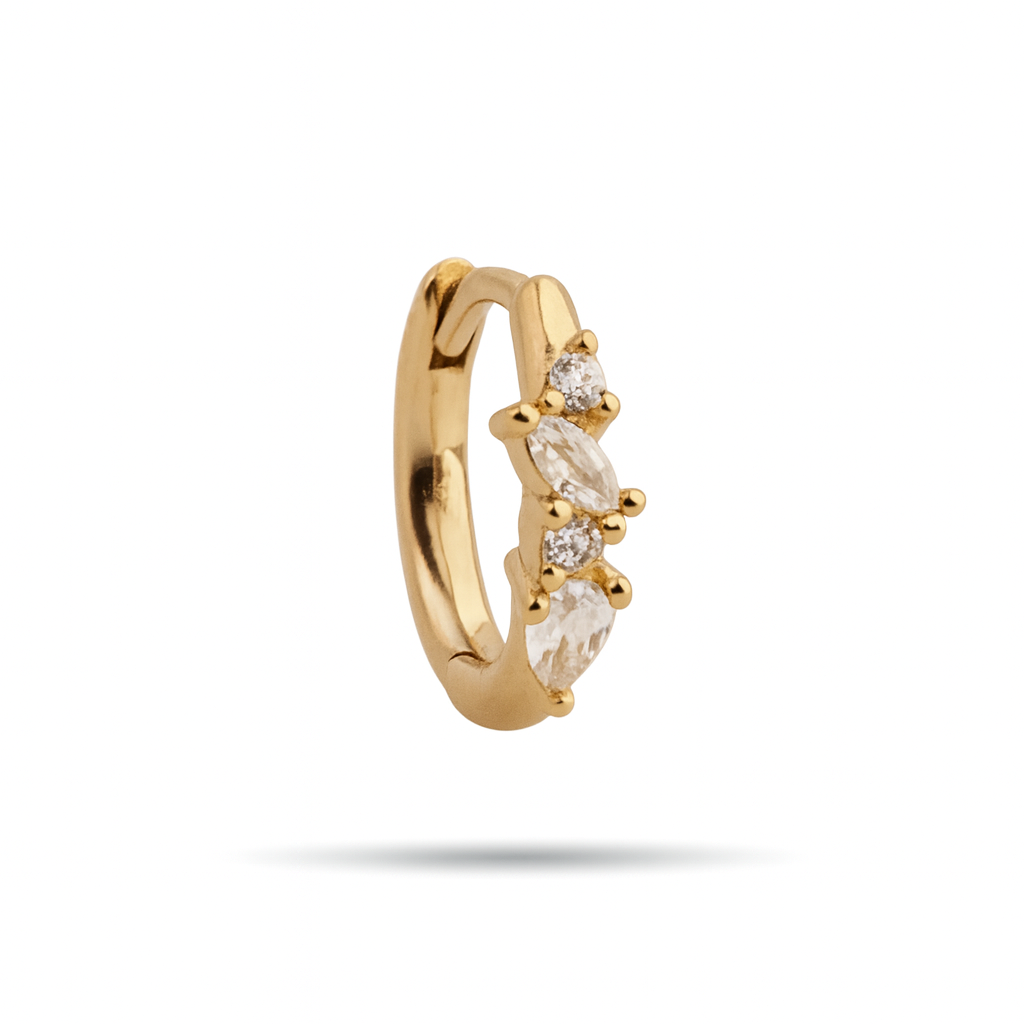 Cette boucle est une créole en plaqué or et zirconiums blancs.