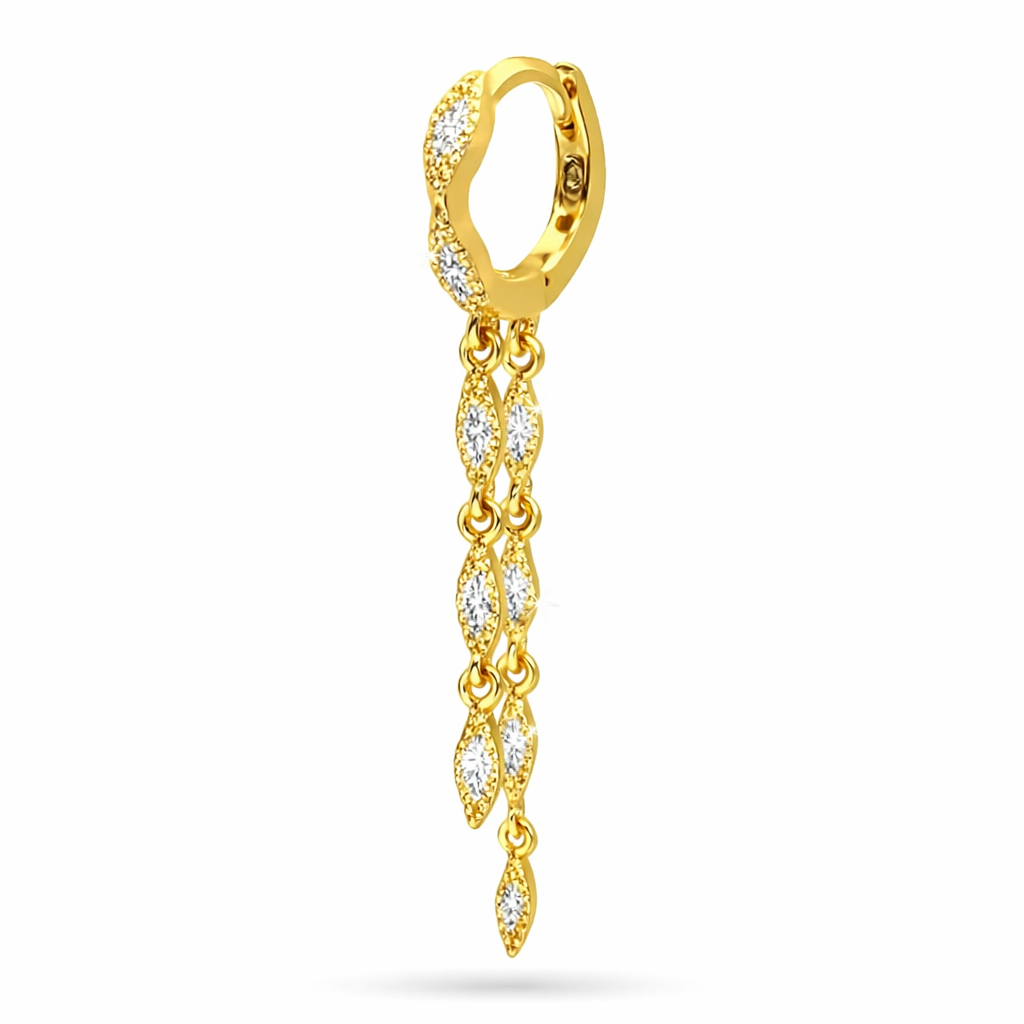 Cette boucle est une créole en plaqué or et zirconiums blancs.
