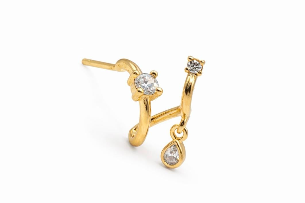 puce Nephera est en plaqué or jaune 3 micron avec un système de fermoir classique à fermer depuis l'arrière. Il est conçu pour des zones comme les lobes.