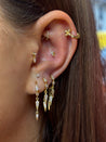Le Piercing Adriana est disponible en plaque or et zirconiums vendu à l’unité. Idéal pour les tragus, hélix, conch, anti hélix, flat. Il se vise par l’avant.