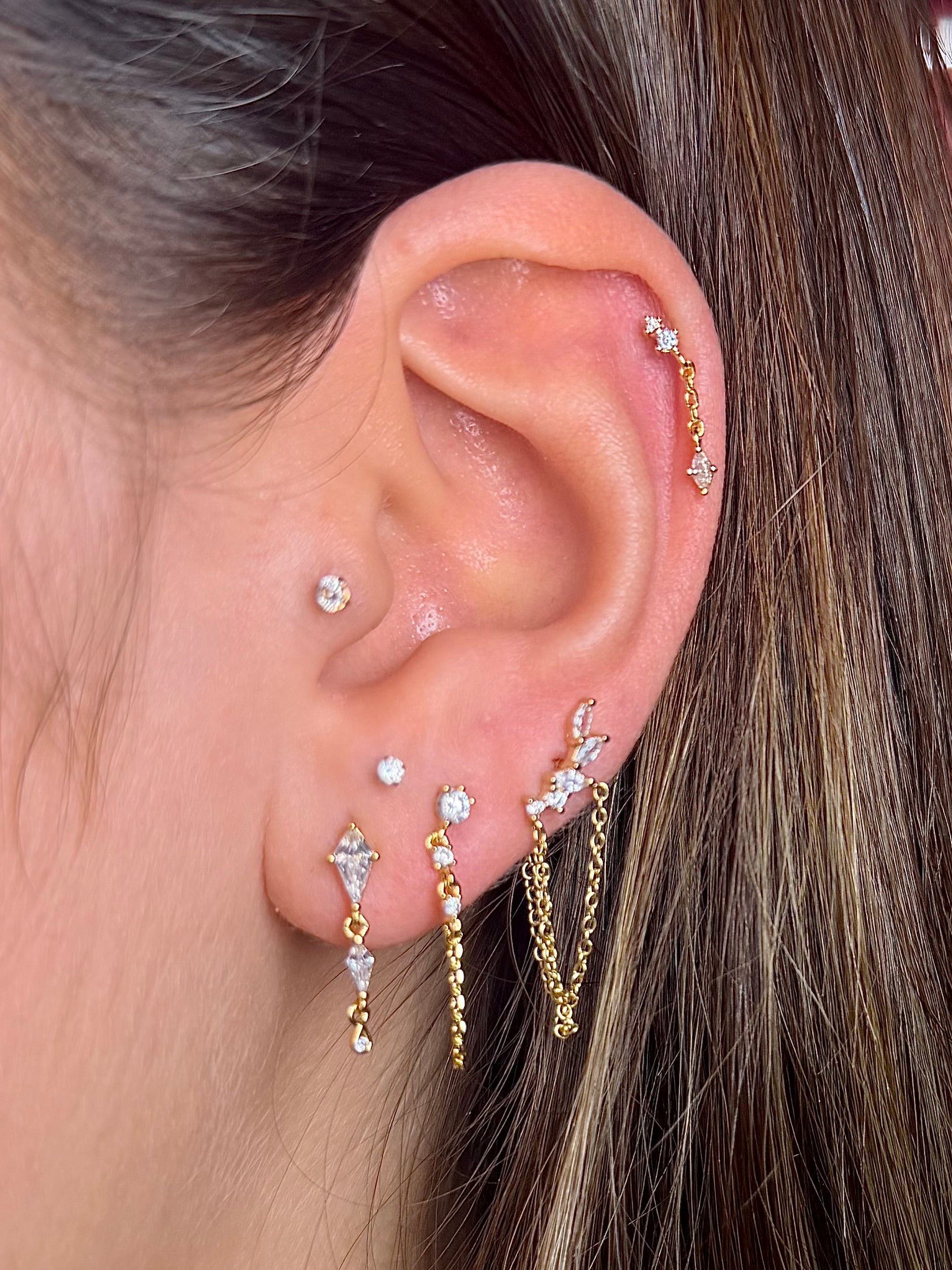 La puce Aria est en plaqué or jaune 3 micron avec un système de fermoir classique à fermer depuis l'arrière. Il est conçu pour des zones comme les lobes.