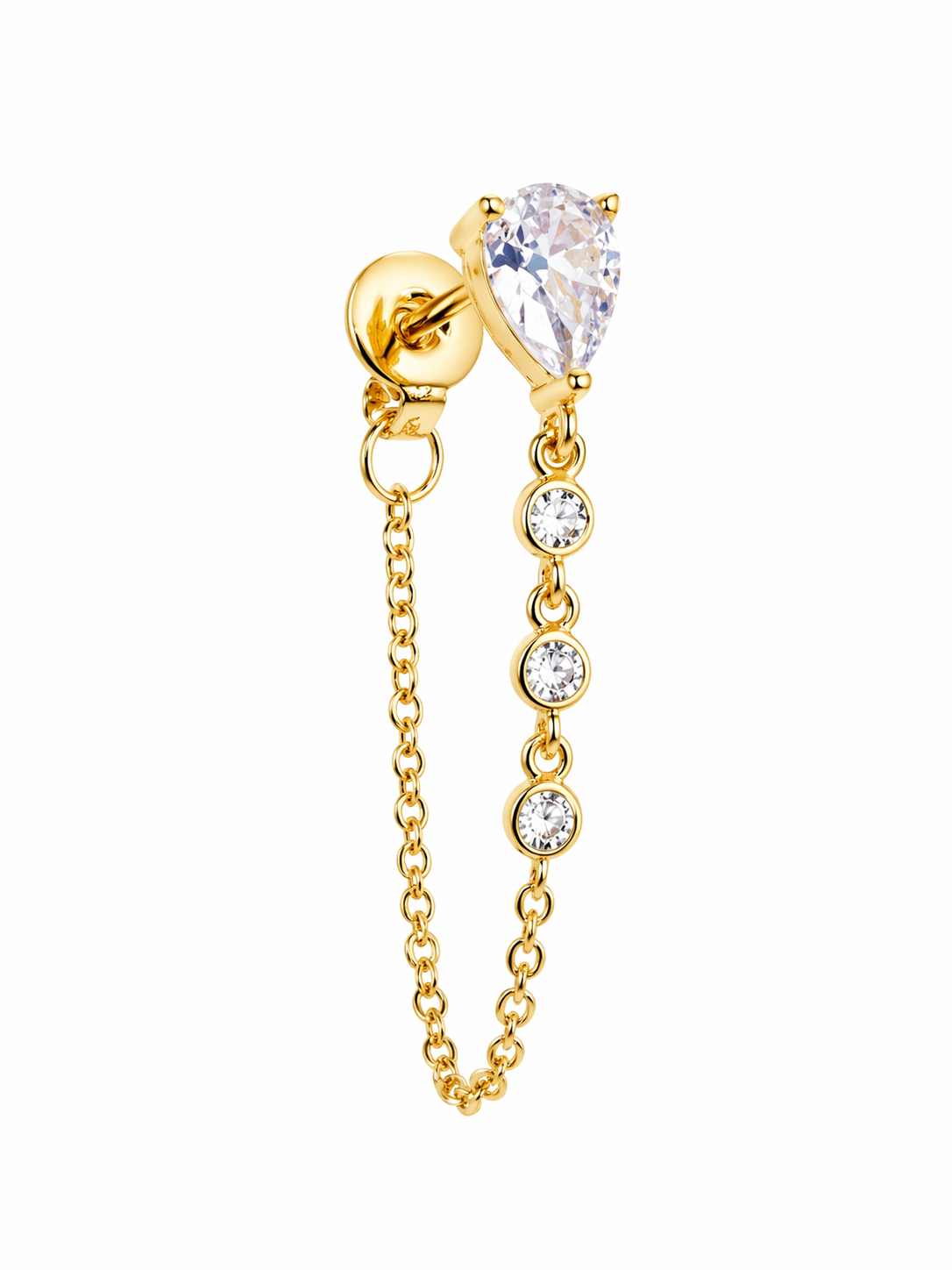 La puce Camélia est en plaqué or jaune 3 micron avec un système de fermoir classique à fermer depuis l'arrière. Il est conçu pour des zones comme les lobes.