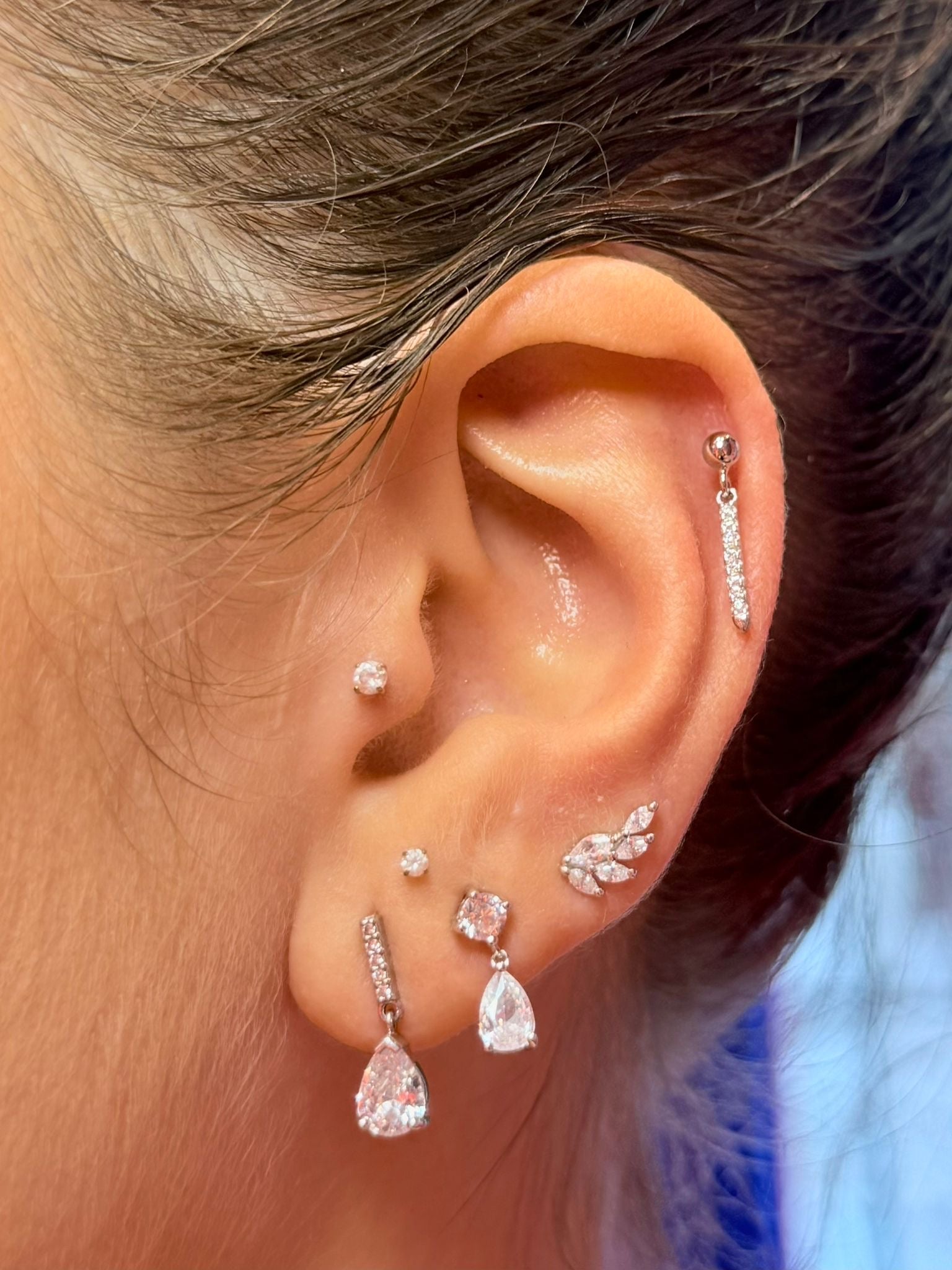 La puce Tephiti est en plaqué or jaune 3 micron avec un système de fermoir classique à fermer depuis l'arrière. Il est conçu pour des zones comme les lobes.